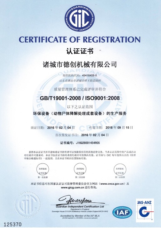 諸城市德創(chuàng)機(jī)械有限公司位于山東省諸城市,東鄰青島,南靠日照,北依濰坊,交通便利,環(huán)境優(yōu)美。我公司專業(yè)生產(chǎn)無害化處理設(shè)備、濕化機(jī)、干化機(jī)。 我公司是一家擁有生產(chǎn)、加工及銷售的環(huán)保設(shè)備制造單位,多年來以先進(jìn)的設(shè)備、過硬的質(zhì)量、合理的價格、完美的售后,竭誠為廣大客戶服務(wù),贏得了全國各地客戶的真誠信賴與大力支持,在行業(yè)中樹立了較高的知名度。 我們擁有精良的工藝裝備,外觀與內(nèi)在并重的質(zhì)量理念,用戶至上的服務(wù)意識,從而保證每一位用戶的產(chǎn)品應(yīng)用取得更好的經(jīng)濟(jì)效益。我們深信:“誠信、務(wù)實、創(chuàng)新”是我們所能帶給用戶的最有價值的東西。本著這種精神,我們正一天天穩(wěn)步的向前發(fā)展。公司在不斷發(fā)展、擴(kuò)大經(jīng)營的同時,更把售后服務(wù)和客戶滿意度放在首要位置,以品質(zhì)保證,價格合理,交貨期快,誠信服務(wù)和專業(yè)的知識來贏得用戶完全的信任。信任源于品質(zhì),服務(wù)創(chuàng)造未來,公司與您攜手共創(chuàng)美好明天! |